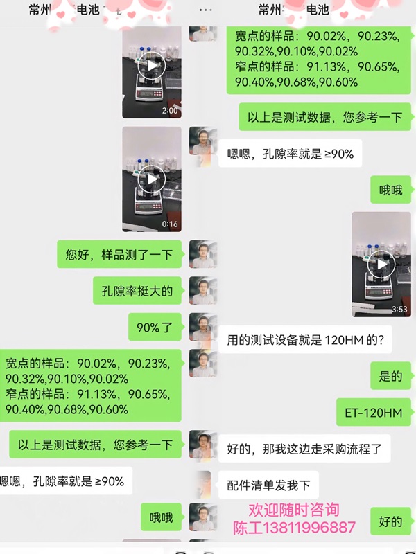 虽然我们做密度仪,孔隙率测试仪十多年了,但对于第一次合作的用户来说,了解的肯定也还是不充分的,那安排样品过来测试一下,给到具体的孔隙率测试视频和数据,这样能让用户更直观的了解仪器是否适合他,满足他的测量需求。