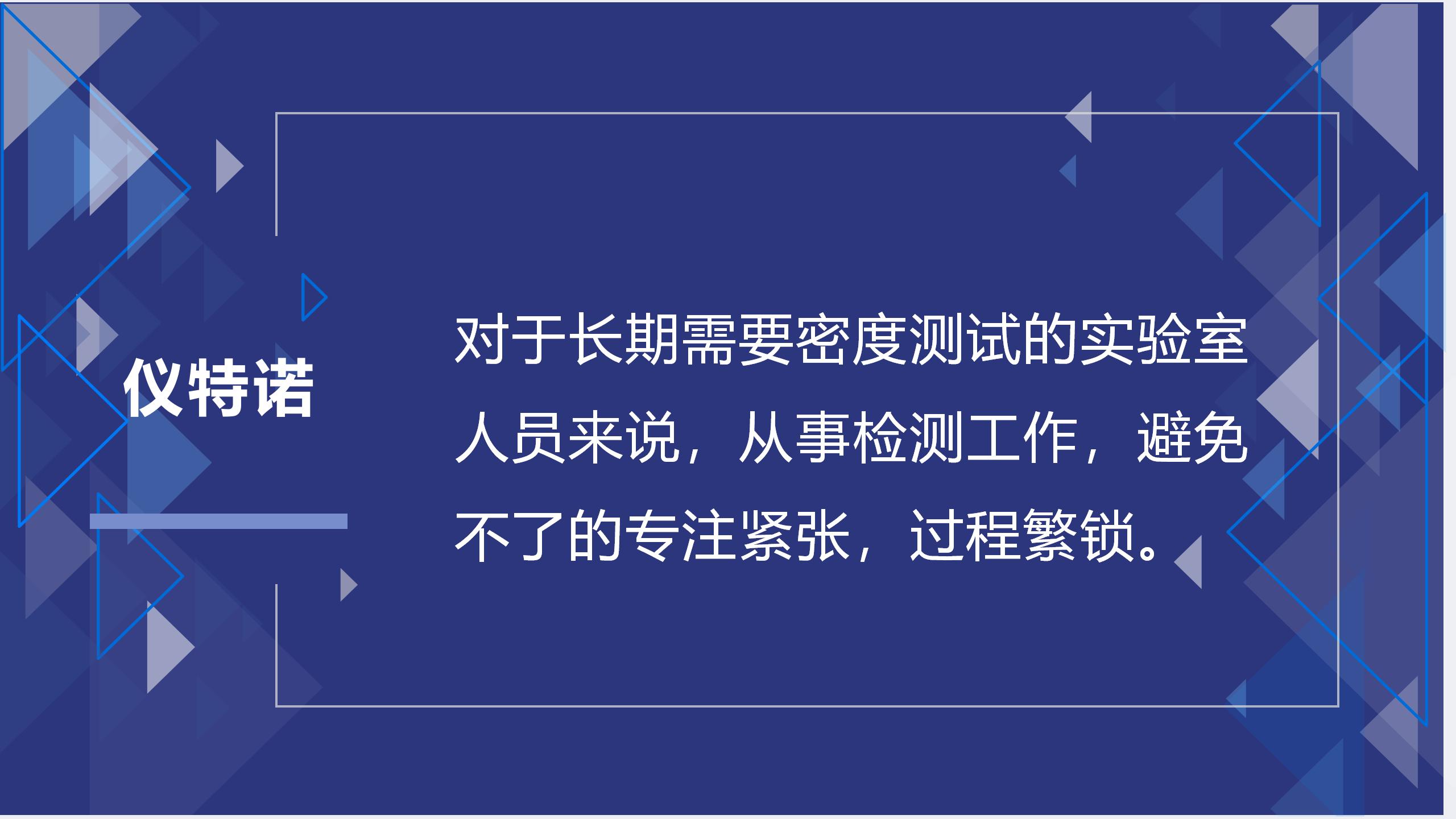 对于长期需要密度测试的实验室人员来说,从事检测工作,避免不了的专注紧张,过程繁烦,有了天九国际娱乐网站网址是多少固体密度测试仪,让你的【密度检测】工作从此变得每天都很轻松,很简单!
