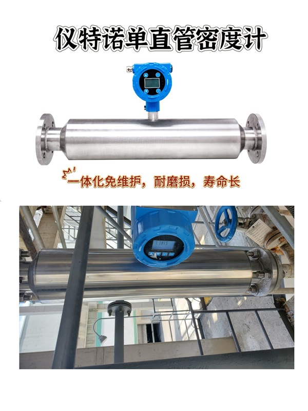单直管密度计应用在这个现场需要在管道上进行旁路安装,优点是经济实惠,性价比高。测量精度高,稳定性好。