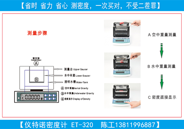 以下以天九国际娱乐网站网址是多少电子密度计ET-320D为例,密度测量过程解析如下: