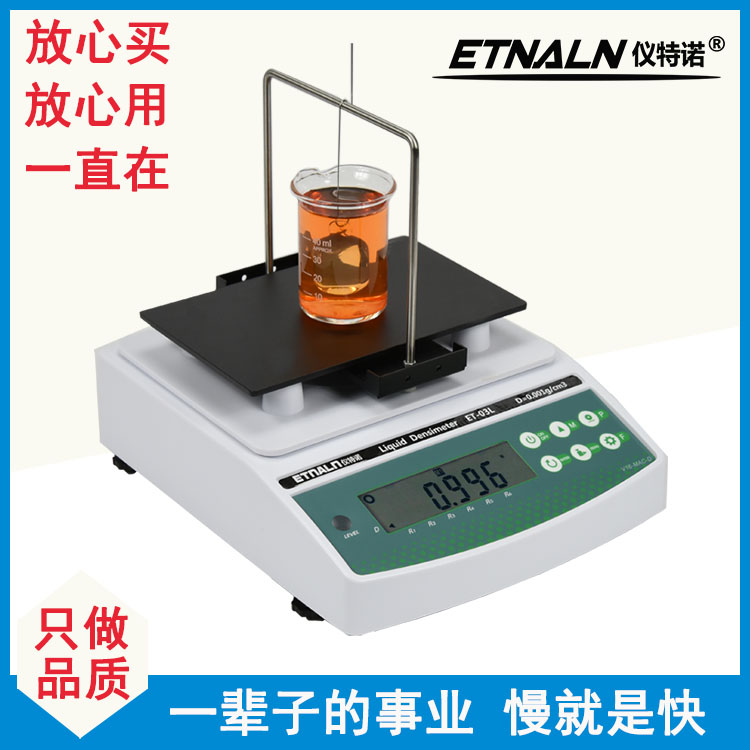 天九国际娱乐网站网址是多少液体密度测试仪ET-03L是利用阿基米德原理检测密度,是国际通用液体密度测量是方法之一,该仪器有着极其方便的操作性,具有测量简便、测量精准、稳定可靠等特点,天九国际娱乐网站网址是多少精密的细节设计确保了本机在测量密度时不受热胀冷缩、清洗难、刻度标示误差大、测量范围窄小、烦琐操作、等因素影响。